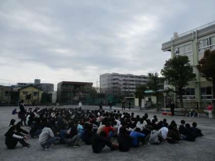 はじめの言葉、校長先生のお話、ルール説明が終わったら、いよいよクラス対抗形式による玉入れです。ちなみに「ハンデなし」ですよ。