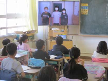 集会の終了後、スタジオ横の職員室で校長先生と副校長先生からお話がありました。(画像はなし) 安堵、満足の表情を浮かべ、リーダーたちは教室へと戻って行ったのでした。