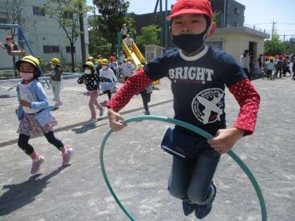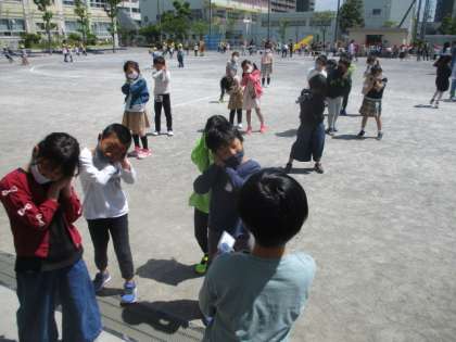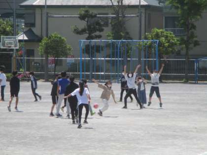 1・2・6年生が集う校庭では、身体を動かしているにもかかわらず、子供たちは活力をチャージされていくシステムなのです。