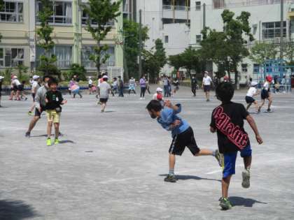 4/27 先生とのひととき21 公開日 2021/04/27 更新日 2021/04/27 学校日記 スポーツ的なことをするとなると、上学年は何をするにも力強かったり、速かったりするから手ごわいもの。一緒に遊ぶ先生も、生半可な気持ちでは太刀打ちできないかもしれません。しかし、必死になって関わってくれる先生方の姿に、子供たちが親近感を覚えていくのもまた事実です。