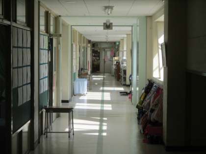 とは言え、校内の光景はいつも通りです。8時25分を過ぎる頃には、廊下はひっそり。各教室では、スタートの準備が着々と進んでいる様子でした。