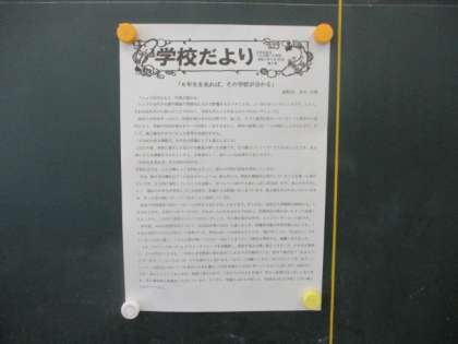 ペーパーレス化の推進にあたり、保護者の皆様には、5月より学校便りはホームページにアップしたものをご覧いただくよう、4月号にてお知らせしておりました。しかし、各ご家庭における情報環境が完全には整っていないことを鑑み、当面は従来通りのものをお配りして参ります。ご承知おき願います。