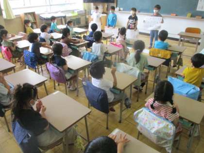学校の様子を先輩が後輩へ伝えていく時間です。