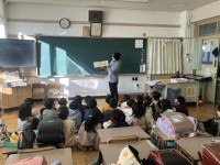 午後、授業研究会が行われました。授業学級となった3年生のクラスだけ、5校時も残り、理科の学習をしました。ズラリと先生方に囲まれ、きっと緊張しているだろうと思いきや、会場の体育館に足を踏み入れると、超リラックスムード。開始時刻まで笑い声に包まれていました。懐かしい旧担任との再会が嬉しくてたまらず、手を振り始める子も見られた程です。
