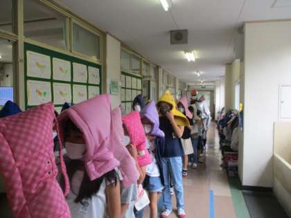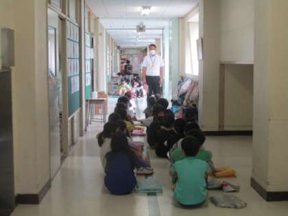 校庭までの避難はできず、廊下までとしました。整列できたら、すぐに人数確認です。