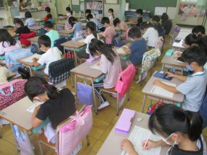 6/16 1年生のパワーアップモーニング 公開日 2021/06/16 更新日 2021/06/16 学校日記 6年生と比べても遜色なしの1年生です。おしゃべりせず、しっかり課題に向き合っていました。お行儀よし!