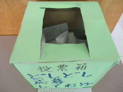 代表委員からの呼び掛けに対し、校内2か所に置かれた投票箱には早速、多くのアイディアが寄せられていました。どんな候補が届いているのか、中身をのぞきたくなってしまいます。