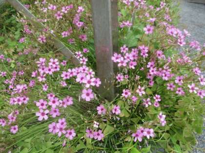 百葉箱の足元にも、こんなに咲き乱れていました。(中画像) けれども、その周囲を走り回って遊びに夢中になっていると、見逃してしまっていると気付かされました