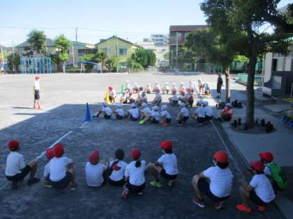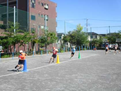 名称通り何でもチャレンジします。今日は4チーム対抗による、折り返しリレー、障害物&競歩リレーでした。