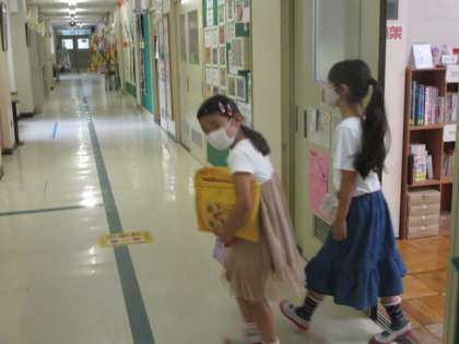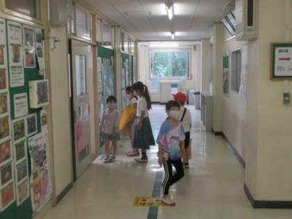 保健室へ出席カードを提出し終えた子供たちは、お辞儀をして退室していました。