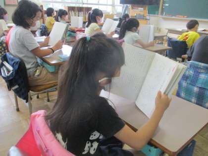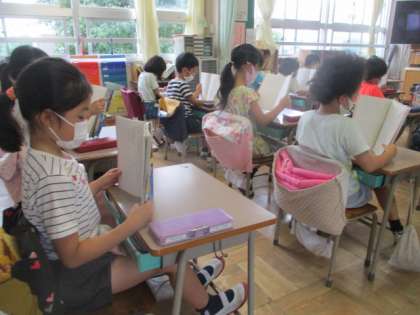 背筋を伸ばし、教科書を立てて、『いなばの しろうさぎ』を読んでいる2年生です。姿勢名人に認定したくなる子が、数名見つかりました。そんな友達を手本に、クラス全員、目指せパーフェクト!