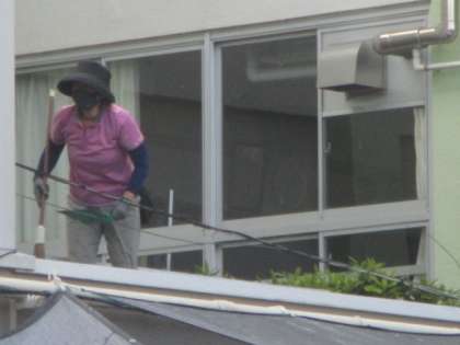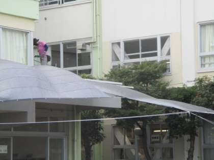 久しぶりに頼もしいお姿を屋根上に見かけました。主事さんたちは、今日も学校中で大活躍してくださっています。授業中ゆえ、子供たちが気付きにくいのが、残念に思うところなのです。