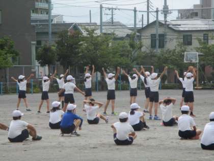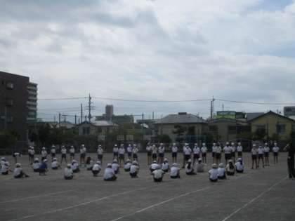 5年生がソーラン節を練習する姿が、本日もよく見えます。よく聞こえます。