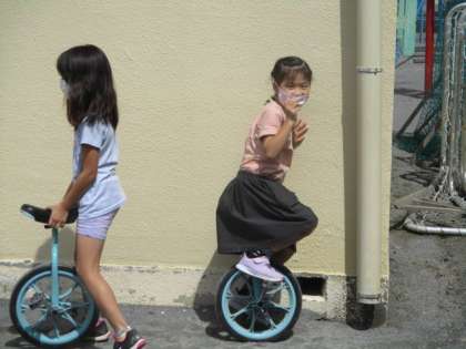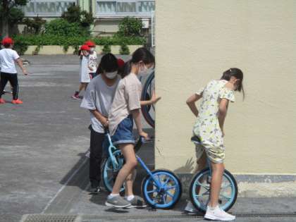 一輪車を頑張るみんなです。