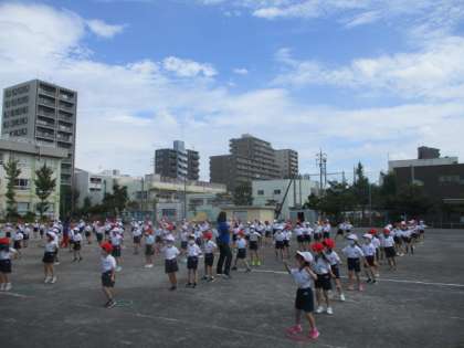 ついに1年生の表現練習も、校庭デビューとなりました。