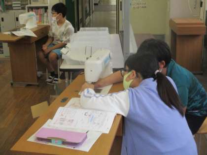 子供たちに聞いてみたら、今日が初めてのミシン操作なのだとか。そりゃ、ワクワクでしょう。静かに先生の指示を聞きながら、活動が行われていました。ミシン各部の名称についても、覚えていっています。使いこなして、作品制作に取り組めるようになる日が待ち遠しいですね。