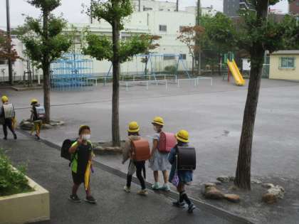 雨雲が抜け、下学年の下校時間帯には、雨が上がりました。傘をさすことなく、視界の広い帰路です。休み時間も外へ出られず、室内に閉じこもりっきりだった一日の終わりは、僅かながらの解放感が味わえましたね。