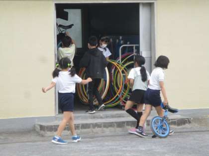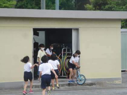 昼休みのレンタルショップ担当は、5年生の運動委員です。張り切って店開きを行い、貸し出しに大童でした。