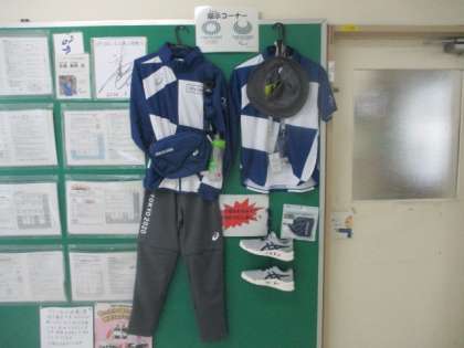 先日、東京都より、大会シティキャスト用のボランティアユニフォームが届きました。ボランティアの気運を醸成していくための取組の一つです。担当教員がそれを着用して登場し、話をしました。また、オリパラコーナーに展示も行っています。