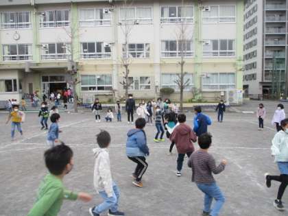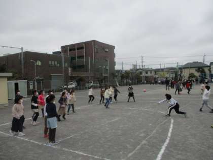 ドッジボールをしていた3年生も「寒い!」を連発し、相手チームよりも寒威との勝負といった様相でした。