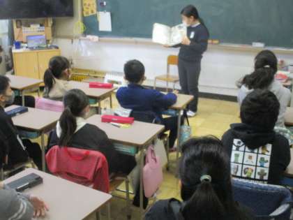 わずか数分間の貴重な読み聞かせタイムでしたので、残念ながら全ての教室を回り切れませんでした。しかし、きっと低学年の子供たちにも喜ばれたことと、確信しています。 図書委員のみなさん、ありがとう。