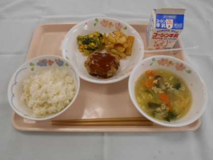 今日の給食は、6年4組さんが外国語の授業で考えたメニューです。