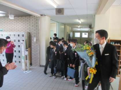 式、記念写真の撮影を終え、教職員が卒業生を見送りました。