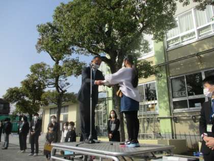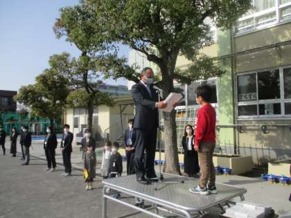 各学年の代表が、修了証を校長先生からいただきました。