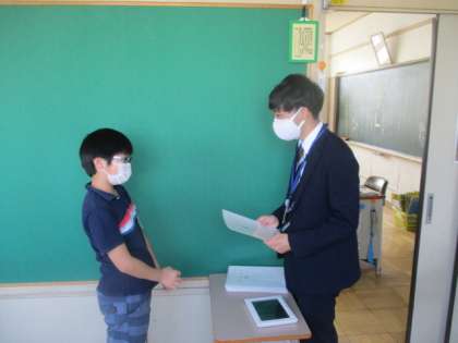 自分が小学生だった頃、こんな風に渡された記憶は全くありません。手渡しされて、あっさり完結していたと思います。先生たちが懇切丁寧に、価値付けや説明をしているのが聞こえてきます。