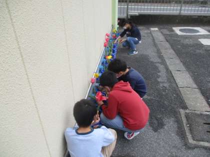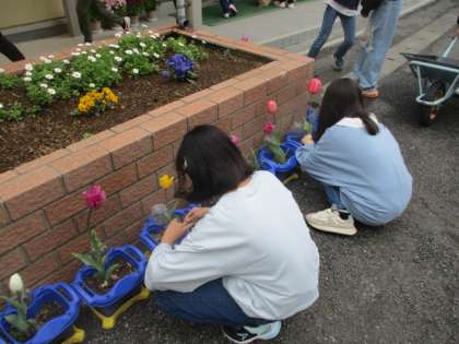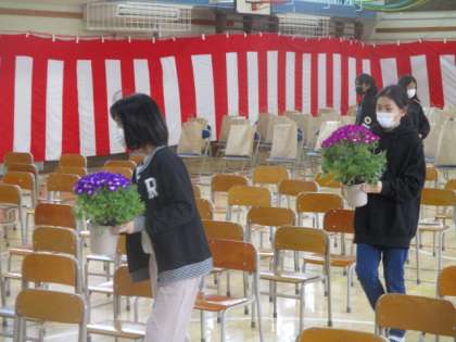 会場や周辺を彩る、お花の準備も着々と。鉢を一生懸命、運んでくれていました。