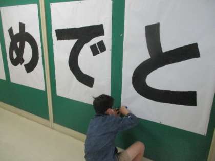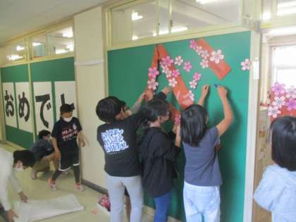 職員室前掲示の更新が行われようとしています。その作業に張り切っていたのは、5年生でした。先生も大助かりでしょうね。