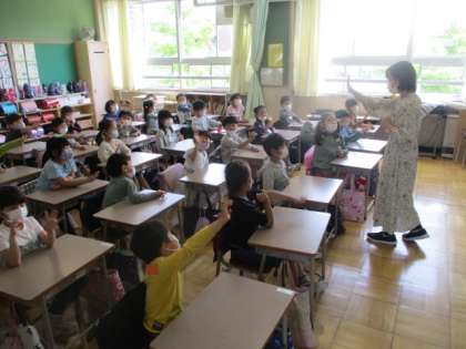 「1と4でごま団子」「3と2でごま団子」・・・、楽しそうに5の構成を復習していた1年生です。