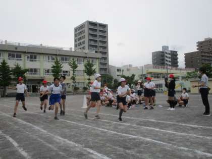 6年生がリレーをしました。進級して以来、初めて記録を取りました。今後、どれだけタイムが短縮されていくか、トップリーダーらしい快走に出会える日の到来を、乞うご期待!
