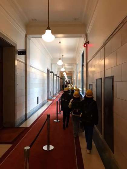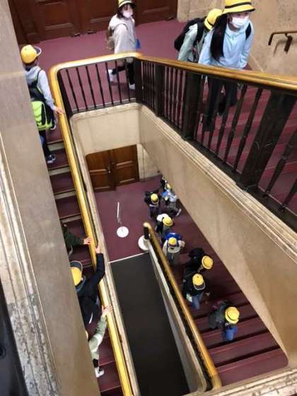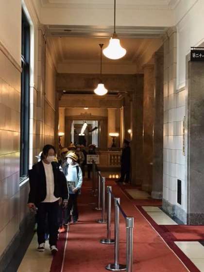 小学校生活最後の社会科見学です。日本の政治の中心である国会議事堂を見学しています。一之江第二小学校の代表としてトップリーダーらしい態度で行動することができています。