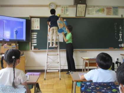 登場するおじいさんと流れ星の気持ちを、動作化を通して考えていきます。想像を広げながら、吹き出しの中にそれぞれの思いを記すことができた1年生でした。