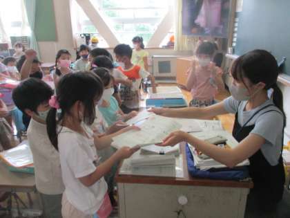 画像は上から、(予想では)おたより、時間割、くばり当番の様子です。