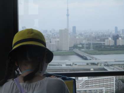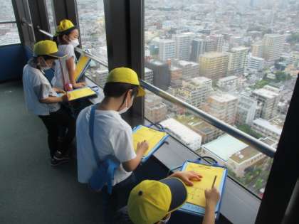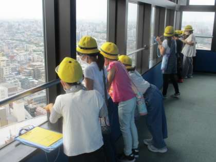地上103m、30階相当の展望台から、東西南北を見渡し、熱心にメモしています。