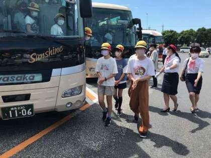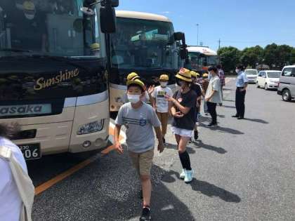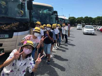 羽生パーキングにて、トイレ休憩です。暑さに負けずに皆、元気です。
