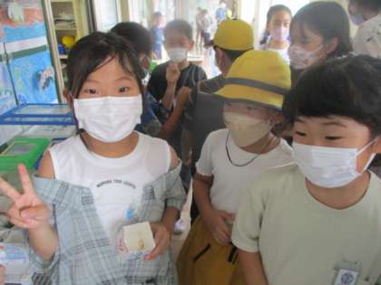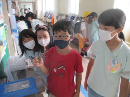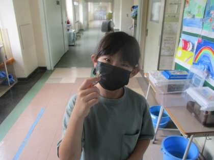 登校して来たばかりの子供たちは、飼育している虫たちのもとへと一目散。様子をウォッチングしたり、セミとスキンシップを図ったり、それはそれは楽しそうな時間を過ごしていました。
