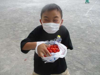 たわわに実ったお野菜を収穫した2年生は、とにかくご満悦!