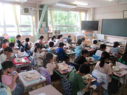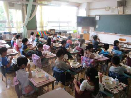 保護者会に伴い、本日は下学年がいつもより早く給食時間となっています。