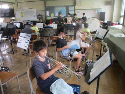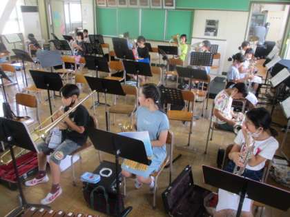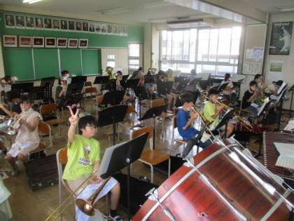 金管バンドのメンバーが登校し、夏休み練習を頑張っています。楽器の音色が一階にまで、聞こえてきました。