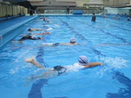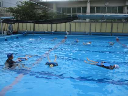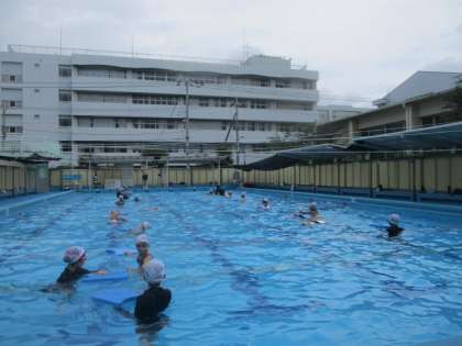 本日の水泳指導は、2年生が対象です。強い日ざしが雲に遮られ、快適なコンディションと言えそうです。