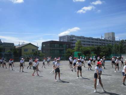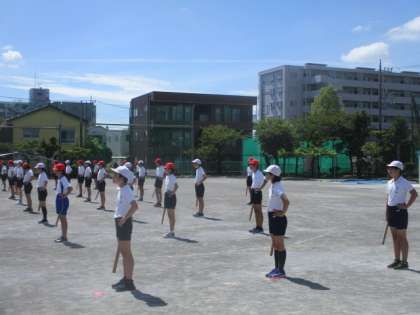 校庭では今日も、6年生が棒を片手に奮闘中です。