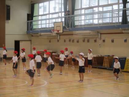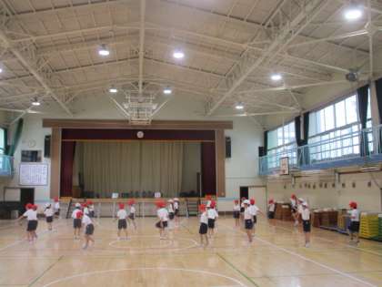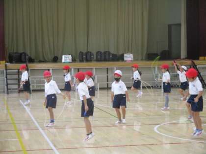 雨天となってしまった3校時ですが、体育館体育は大丈夫。ラッキーな1年生が、短なわ跳びを練習中でした。
