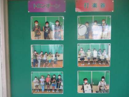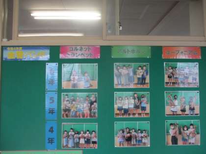 今朝も大活躍した今年度のメンバーが、ズラリと紹介されていますよ。音楽室前の廊下にて。