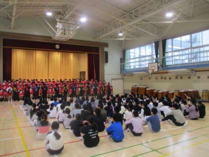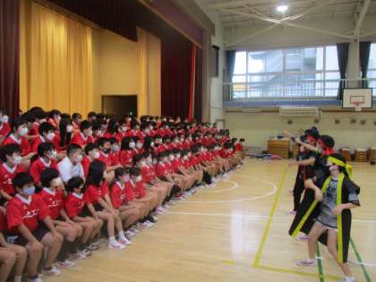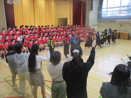 サブリーダーの応援団が登場しました。運動会でのご恩返しをするかの如く、特筆すべき盛り上げ具合に、圧倒されるトップリーダーたちでした。体育館は熱狂の渦の中。