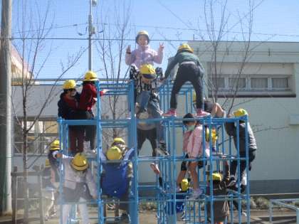 警戒して渋々屋外へ出てみたら、ぜ〜んぜん平気! まぶしい陽光に包まれた校庭は、とっても穏やかで、子供たちは元気はつらつで外遊びを楽しんでいました。