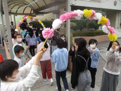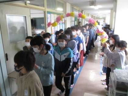 体育館で5年生に見送られたあと、トップリーダーたちは校舎内へ。