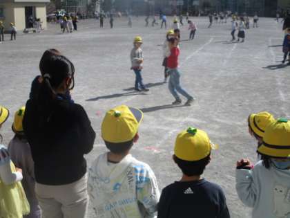 1年生オンステージ。友達だけでなく、先生方もパフォーマンスに釘付けです。